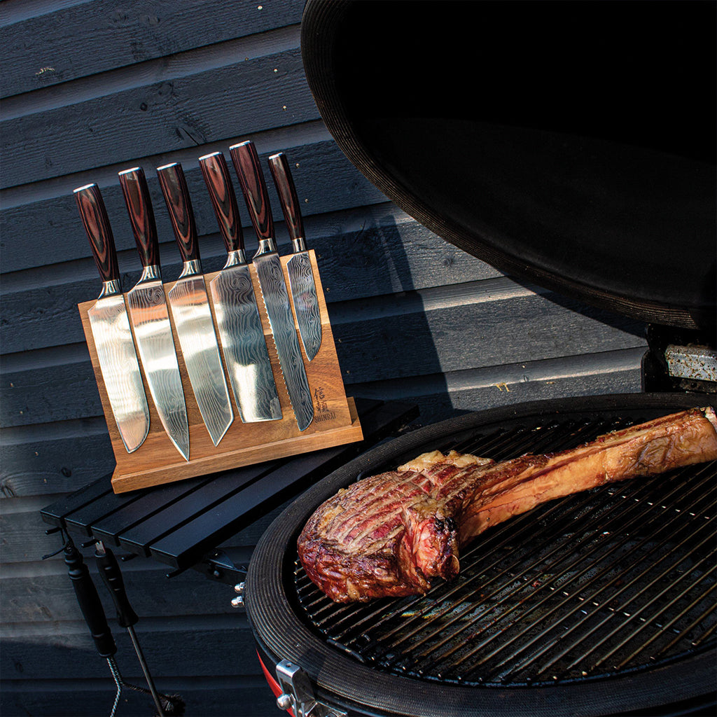 Das 6-teilige Messerset der Shinrai Damascus Print Series + gratis Schere ist die perfekte Ergänzung für Ihre Küche. Ein wunderschönes Set mit unverwechselbarer Damastoptik und messerscharfer Leistung für den täglichen Gebrauch.