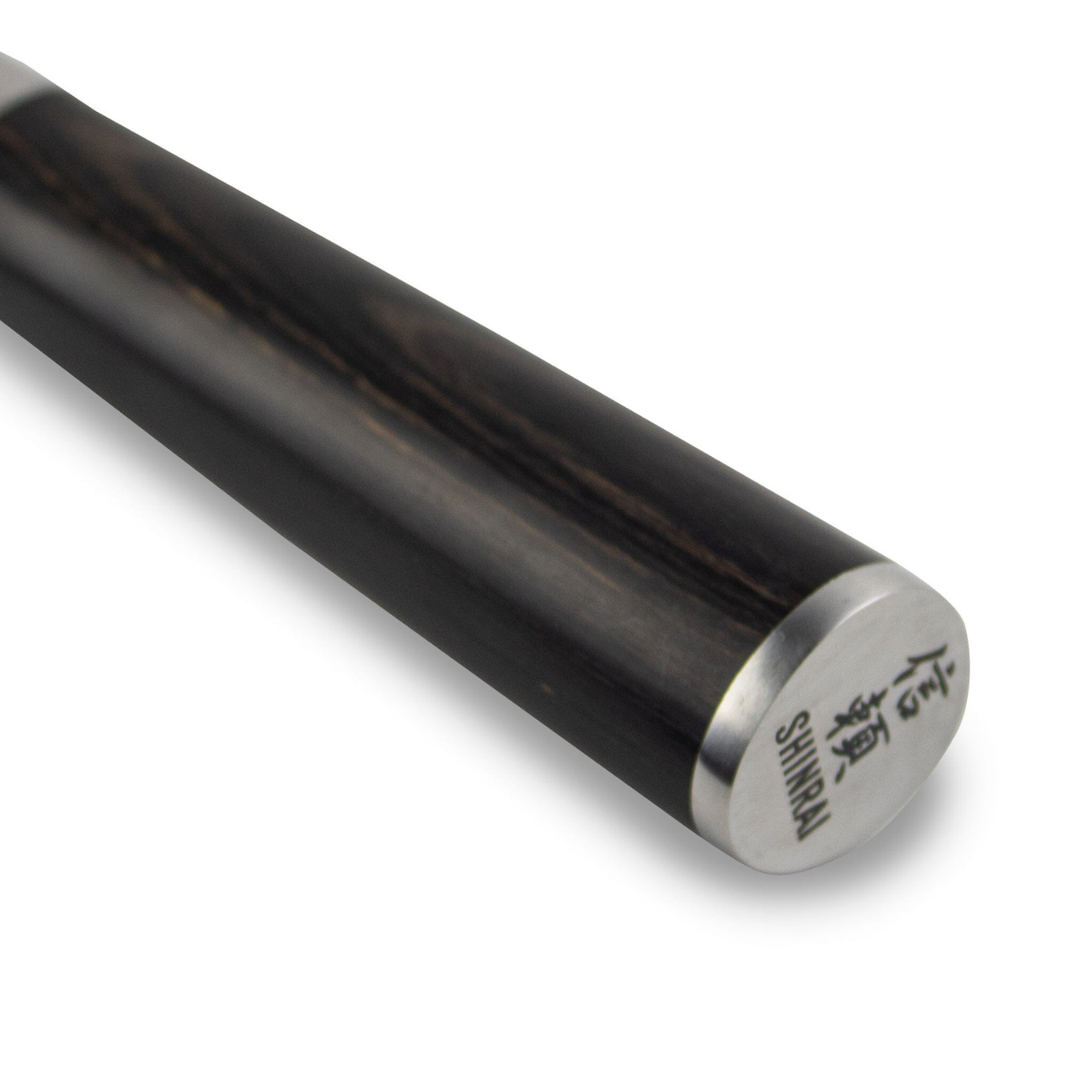 Das Shinrai Damascus Hammered Damascus BR Kochmesser ist die perfekte Ergänzung für Ihre Küche. Dieser Allrounder eignet sich ideal zum Schneiden von Fleisch, Fisch, Gemüse, Obst und Kräutern und vereint eine einzigartige Optik mit hochwertiger Leistung.